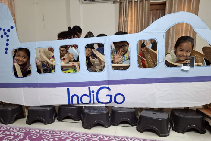 To give children the experience of traveling to Malaysia 🌏by plane and then visiting the park, the center prepared a plane ✈️ set-up so that the children felt as if they were actually sitting in a plane and flying to Malaysia. Selfie points related to the bird park were also arranged, where the children took group selfies.✨✨✨